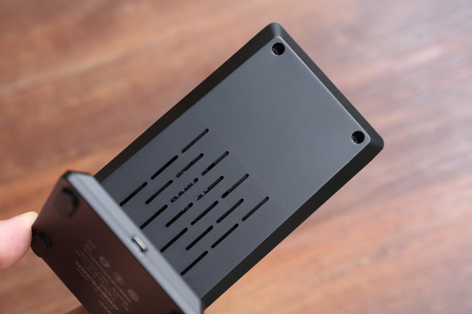 表面使用横向凹凸的设计,将内置的风扇位置进行开孔,凹凸设计大大加强空气流动,从而提升散热能力。