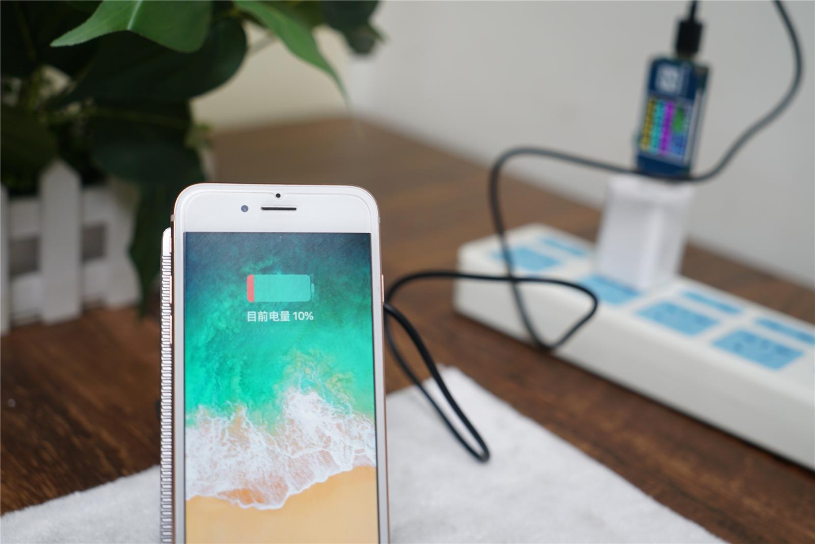 接下来笔者就分别使用安卓手机和iPhone 8进行充电测试。iPhone 8的电池容量为1821mAh,支持无线充电,配备5W充电器,而Aircharge则能提供最高7.5W功率,这里对充电速度、温度进行测试。